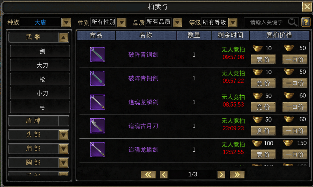 一、差异化拍卖体系:精准匹配交易需求1. **普通拍卖行:经济系统的基石**作为交易量最大的基础平台,这里流通着装备强化材料(如玄铁、星砂)、常规消耗品(气血丹、法力药剂)以及蓝色品质以下的过渡装备。数据显示,该区域日均成交单数占全服交易的73%,其价格波动直接反映基础物资的供需关系。建议新手玩家优先在此熟悉市场规律,通过批量上架采集类材料快速积累启动资金。